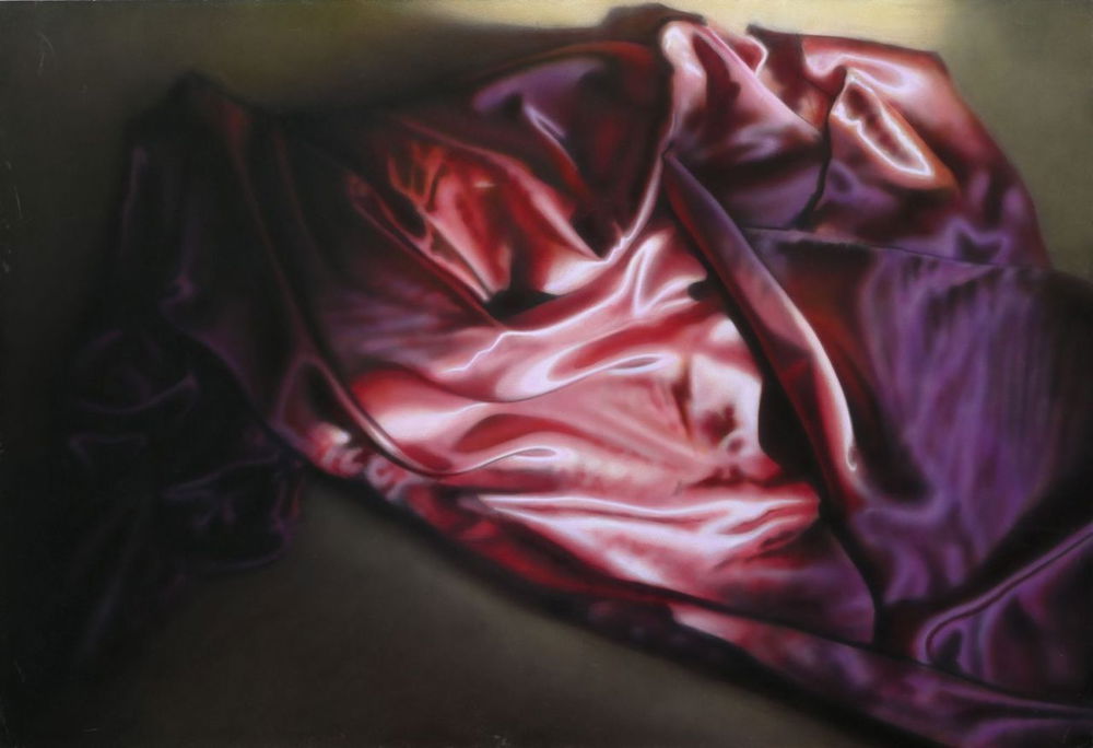 „Hipnotyzuje formą, iluzją i skłania do zapatrzenia się w siebie. Być może dlatego tak wiele uwagi poświęcam technologii. Moje obrazy nie są namalowane w sensie ścisłym – są raczej sporządzone. Powstają z piasku, sadzy i pigmentu. Ostatnio pracuję z użyciem aerografu oraz pigmentu, którym pokrywam powierzchnię obrazu. Używam również barwionego piasku, który pozwala mi uzyskać, znany z fotografii, efekt ziarna”.